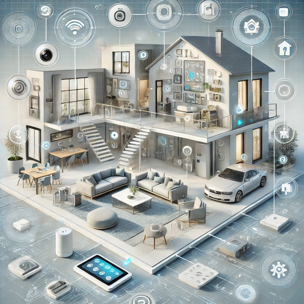 A integração dos dispositivos num sistema de domótica é feita através de uma central de controle, que liga e gere os aparelhos, permitindo que eles se comuniquem e operem de forma coordenada, tudo isso através de uma interface intuitiva e acessível, seja por aplicativos, assistentes de voz ou comandos remotos.
